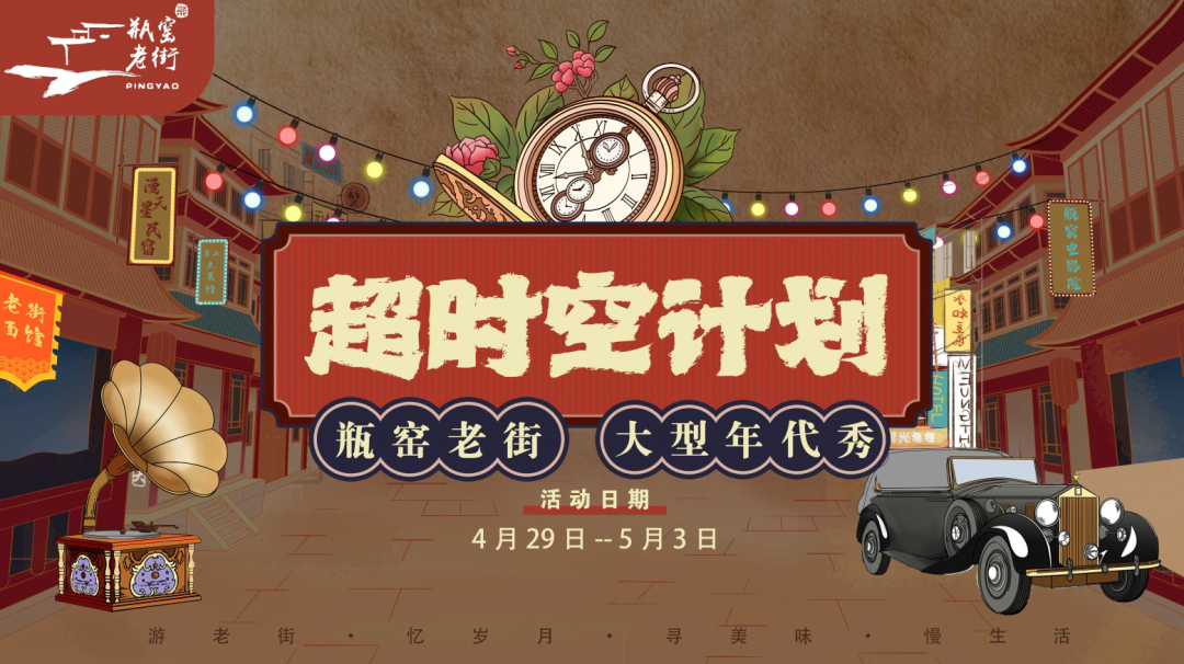 瓶窑老街以《超时空计划》为主题,展开一场五一大型年代秀。将有精彩的演艺、特色民俗及氛围市集。复古年代快闪秀让游客近距离体验摩登上海、港风年华、梦回千禧等不同年代的舞蹈风采,一场歌舞狂欢的时光大秀即将在此开启。书评人将“那些年的故事”娓娓道来,还原老底子的慢时光生活。还有露天老电影、花伞市集,大家可以一起来游老街、忆岁月、寻美味、慢生活,感受杭州的非遗文化。